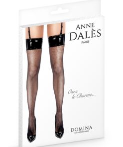 Tendance fétichiste de la résille et du vinyle, ces bas se portent avec des jarretelles.