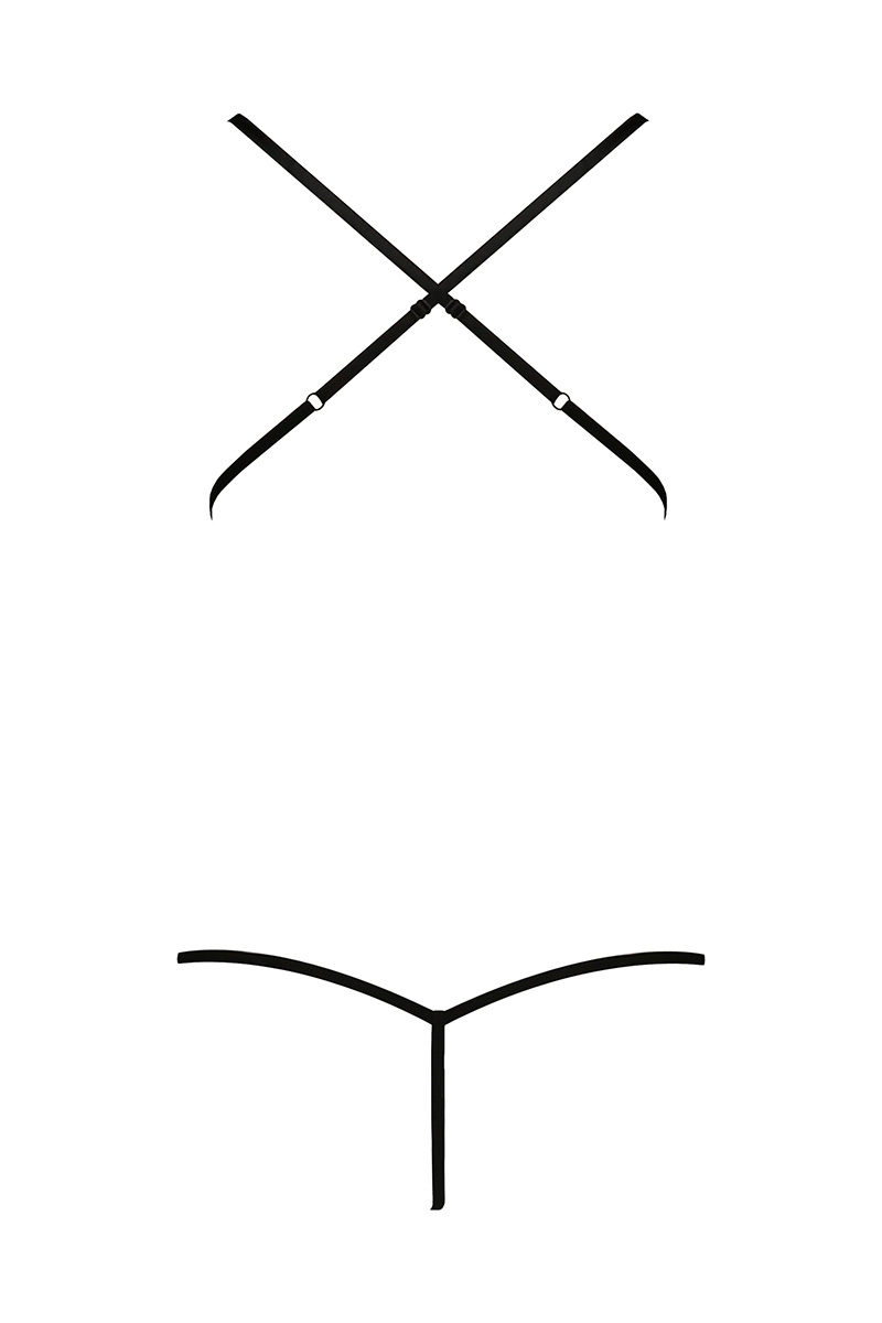 A larrière, des bretelles croisées réglables apportent du confort et un maintien parfait. Les fesses sont recouvertes de fines lignes noires sobres, dévoilant ainsi leur galbe sensuel.