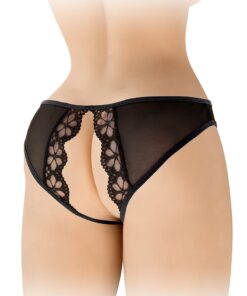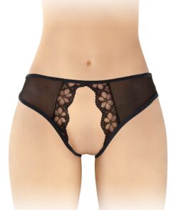 La culotte ouverte Ambre noire fabriquée par Fashion Secret est très sexy et, est fabriquée avec du tulle de qualité et une dentelle joliment décorée de quelques fleurs.