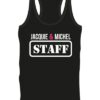 – Débardeur J&M blanc avec logo rond « Jacquie & Michel » en gros sur la poitrine