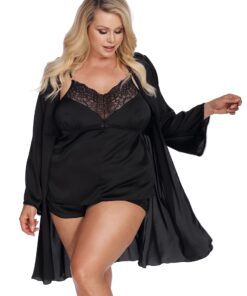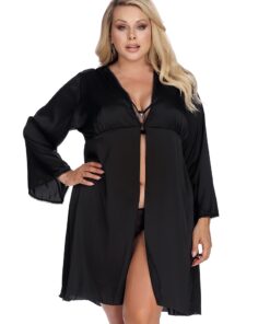 Apportez une touche de sensualité à vos tenues avec ce déshabillé en satin noir de la marque Anaïs Lingerie.