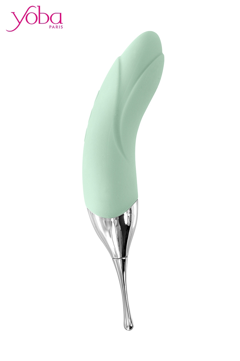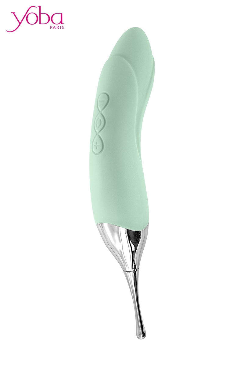 Sextoy féminin 2 en 1 avec fonction stimulateur de clitoris d’un côté et fonction vibromasseur de l’autre, par Yoba.