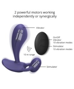 De lamour pile et face avec le Double stimulateur télécommandé Witty Midnight Indigo.