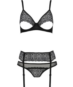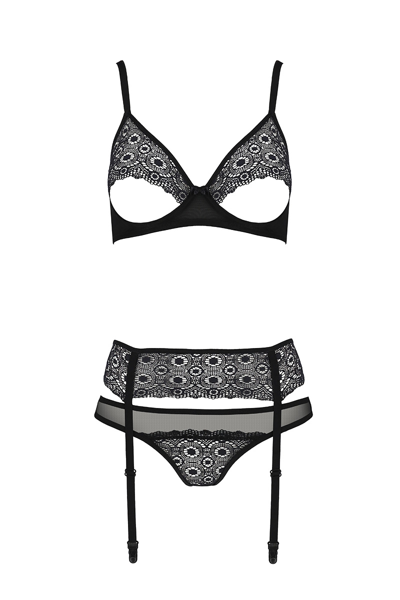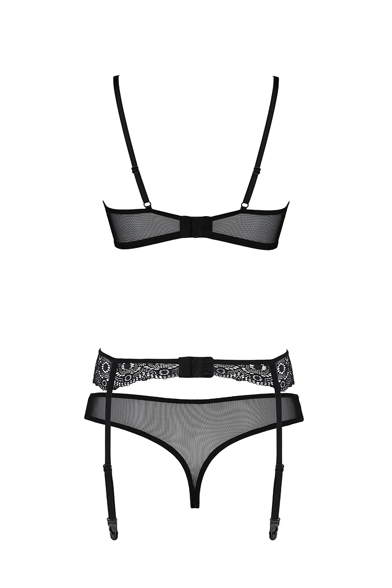 Ensemble 3 pièces : soutien-gorge, porte-jarretelles et string (bas non fournis)
