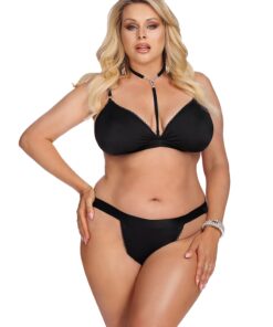 Ensemble sexy soutien-gorge et string en tissu satiné par Anaïs Lingerie.
