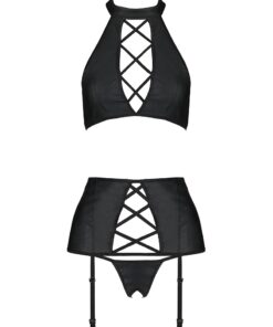 Ensemble 3 pièces : soutien-gorge, porte-jarretelles, et string ouvert (bas non fournis)