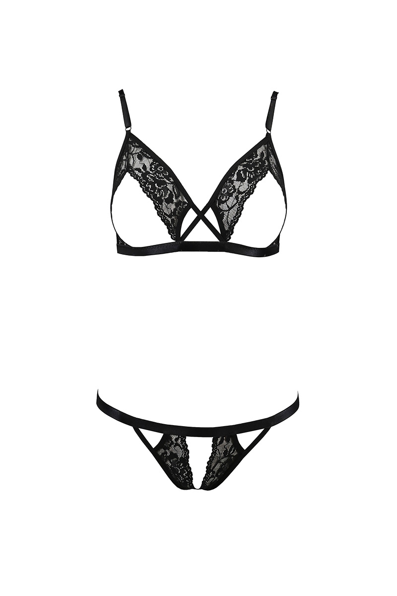 Ensemble 2 pièces : soutien-gorge et string ouverts