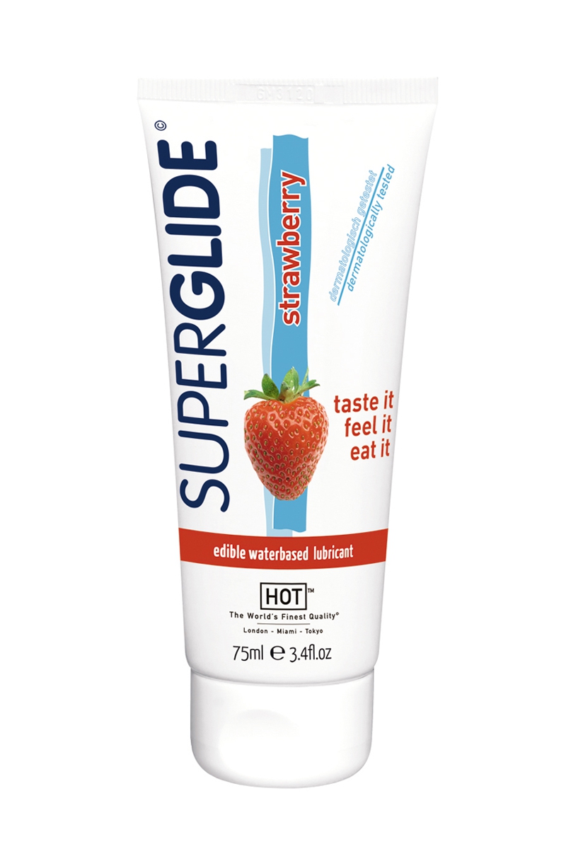 La marque HOT propose sa gamme de lubrifiants Superglide, des gels intimes comestibles de haute qualité à base deau, avec différentes saveurs exquises idéales pour les rapports oraux, mais aussi pour les massages, et plus généralement pour la plupart des pratiques sexuelles.