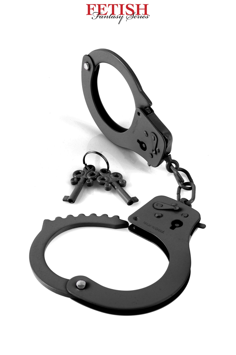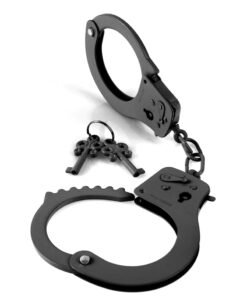 Pour les amateurs d’accessoires BDSM de qualité, la paire de menottes métalliques « Designer Cuffs » de la marque Pipedream est idéale pour vos jeux de soumission et de domination.