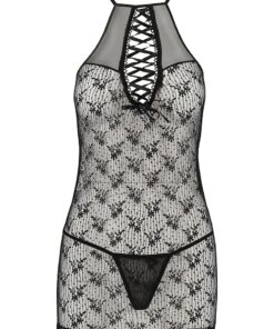 Mettez-vous en valeur dans cet ensemble très sexy nuisette noire transparente en résille et string, de la marque Passion.