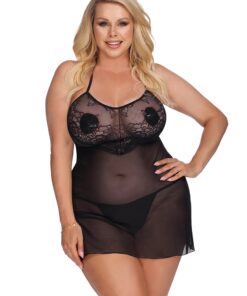 Nuisette Queen size près du corps en tulle noir (string non fourni).