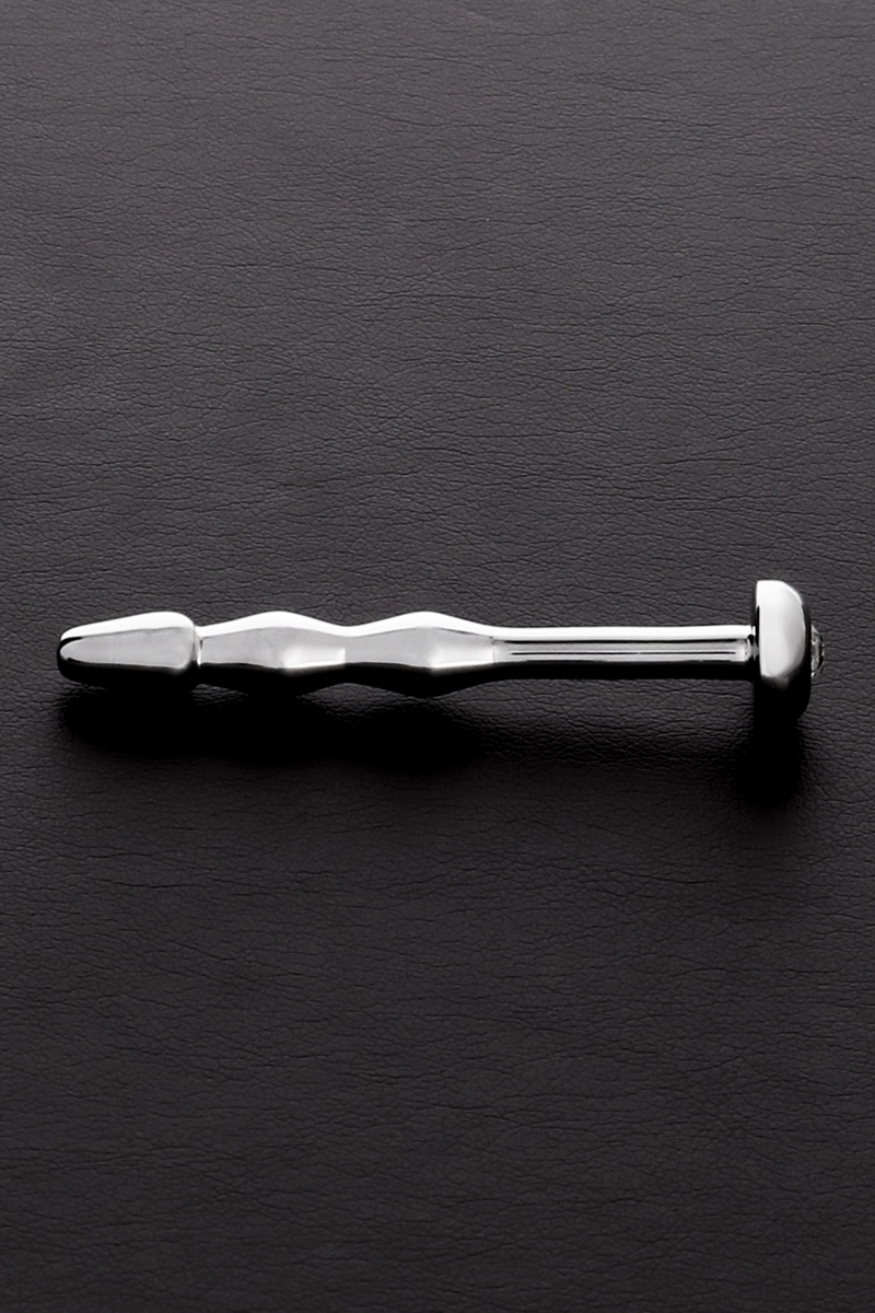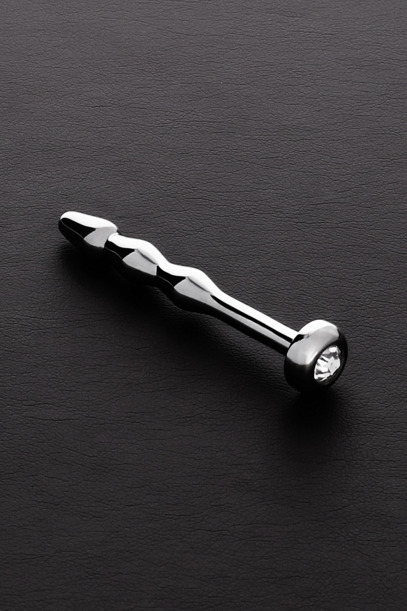 La tige est dotée de 3 renflements formant une ondulation sur toute sa longueur pour accroitre les sensations. La base accueillant le bijou est plus large (15 mm) pour éviter que la tige ne s’enfonce trop dans l’urètre.