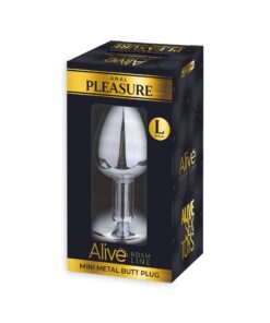 Superbe plug en métal fabriqué par la marque espagnole Alive. Ce modèle pèse 136 grammes pour une longueur de 8 cm insérable et un diamètre de 4 cm pour la partie la plus large.