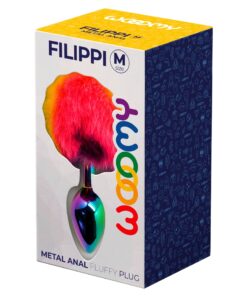 Tout autant sextoy anal, bijou coquin qu’accessoire de jeu BDSM, le plug Filippi Raimbow taille medium de chez Wooomy est un jouet intime particulièrement original et sexy avec ses couleurs LGBTQ+ friendly et son pompon en fourrure synthétique fixé à son extrémité.