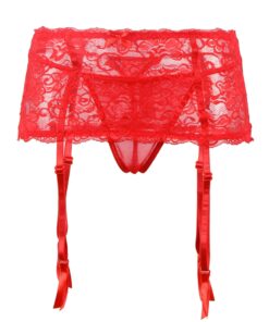 Osez ce porte-jarretelles en dentelle rouge très élégante et en forme de bandeau sur les hanches.