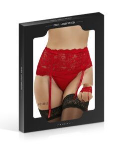 Ensemble porte-jarretelles sexy rouge équipé de 4 jarretelles ajustables et de son string assorti, par Paris Hollywood.