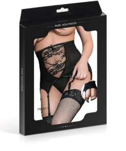 Serre taille noir taille haute, sexy et rétro, avec jarretelles intégrées et string inclus, par Paris Hollywood.