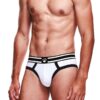 Il présente un élastique bicolore blanc et noir à la taille, le logo classique Prowler Paw surpiqué à l’avant de l’élastique et un dos simple.