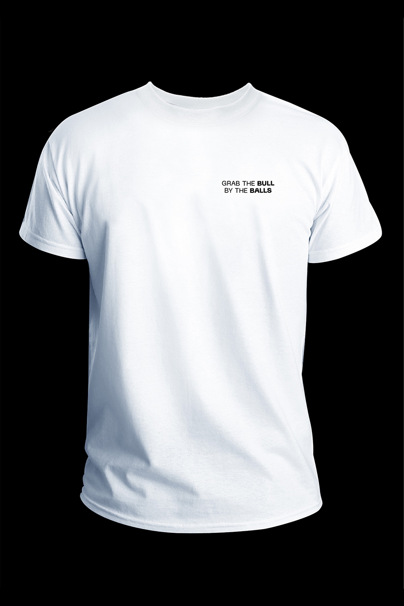 T-shirt blanc collector Jimizz « Grab the bull by the balls ».